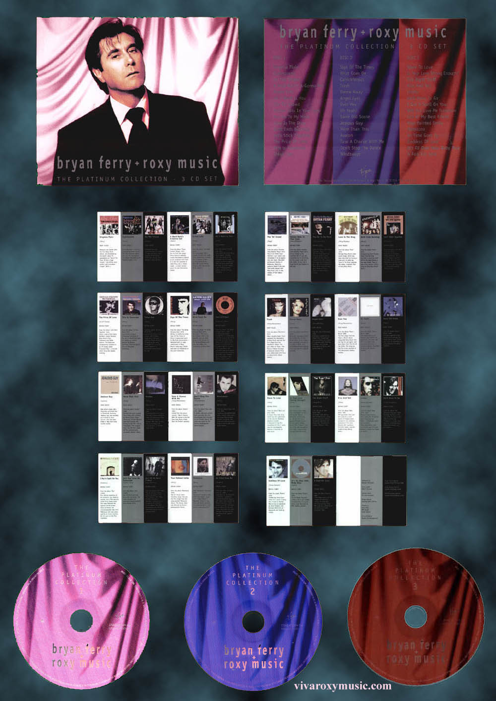 The Platinum Collection is a 45 track 3CD box set containing all 45 UK Bryan Ferry + Roxy Music singles was released on 7th June 2004. The USA version was released August 24 2004.