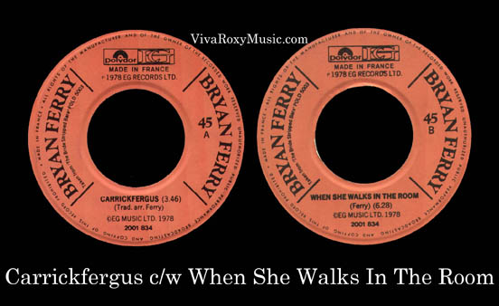 This song was written by Bryan Ferry for The Bride Stripped Bare album in 1978. It was also used as the b-side to the Carrickfergus single.