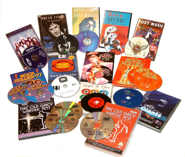 I have compiled a list of all Roxy Music, Bryan Ferry & Andy MacKay DVD available. All these DVDs are commercially available. Not all are available in the same country but can be obtained through imports and not all are available in every region format.. There are also some tracks on ?Various Artists? DVDs that are not available on the Roxy Music & solo DVDs.nnA full list of all Roxy Music & Solo DVD, Video, Video CD and Laser Disc can be found here.nnIn chronological order of the recording of the footage:nn